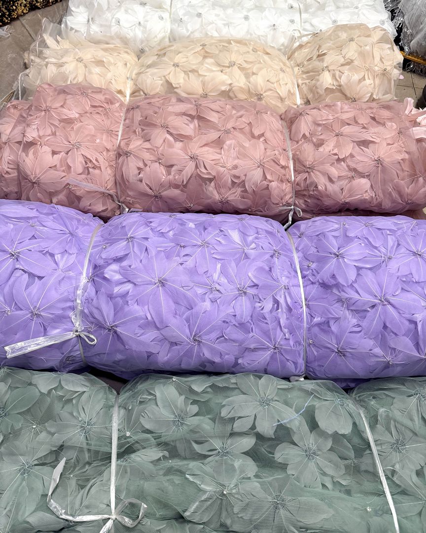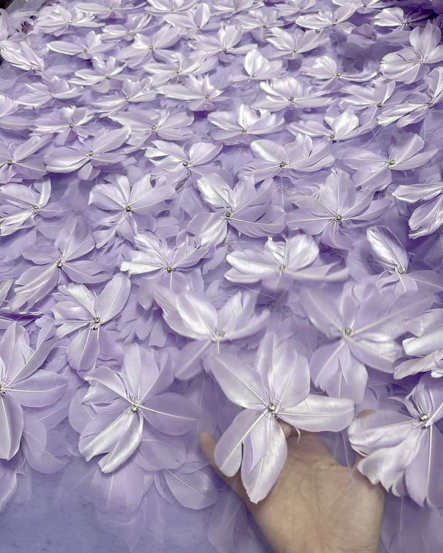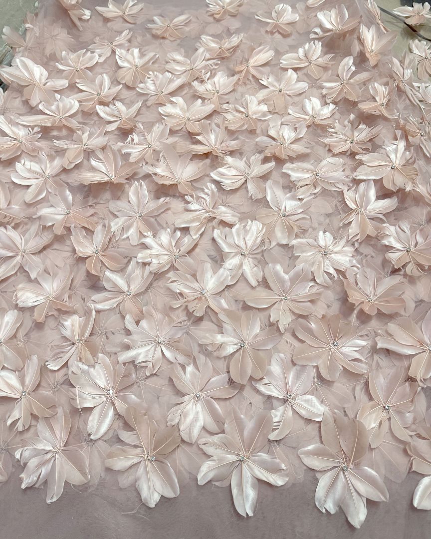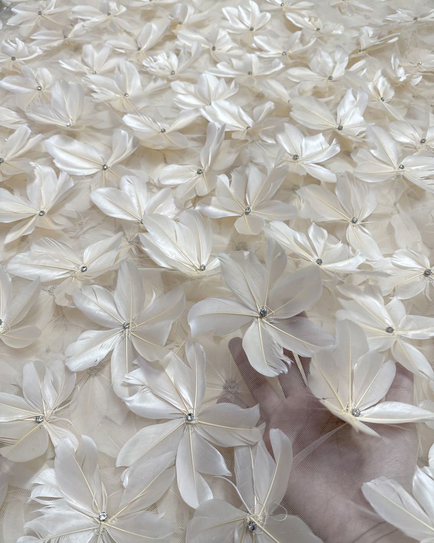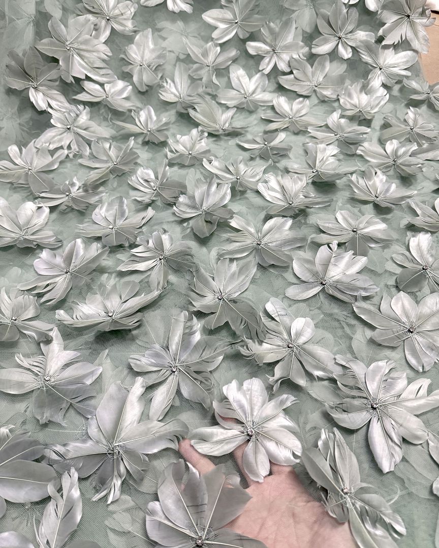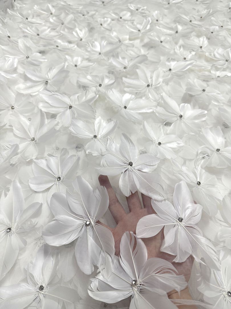 3d Floral feathers Couture fabric