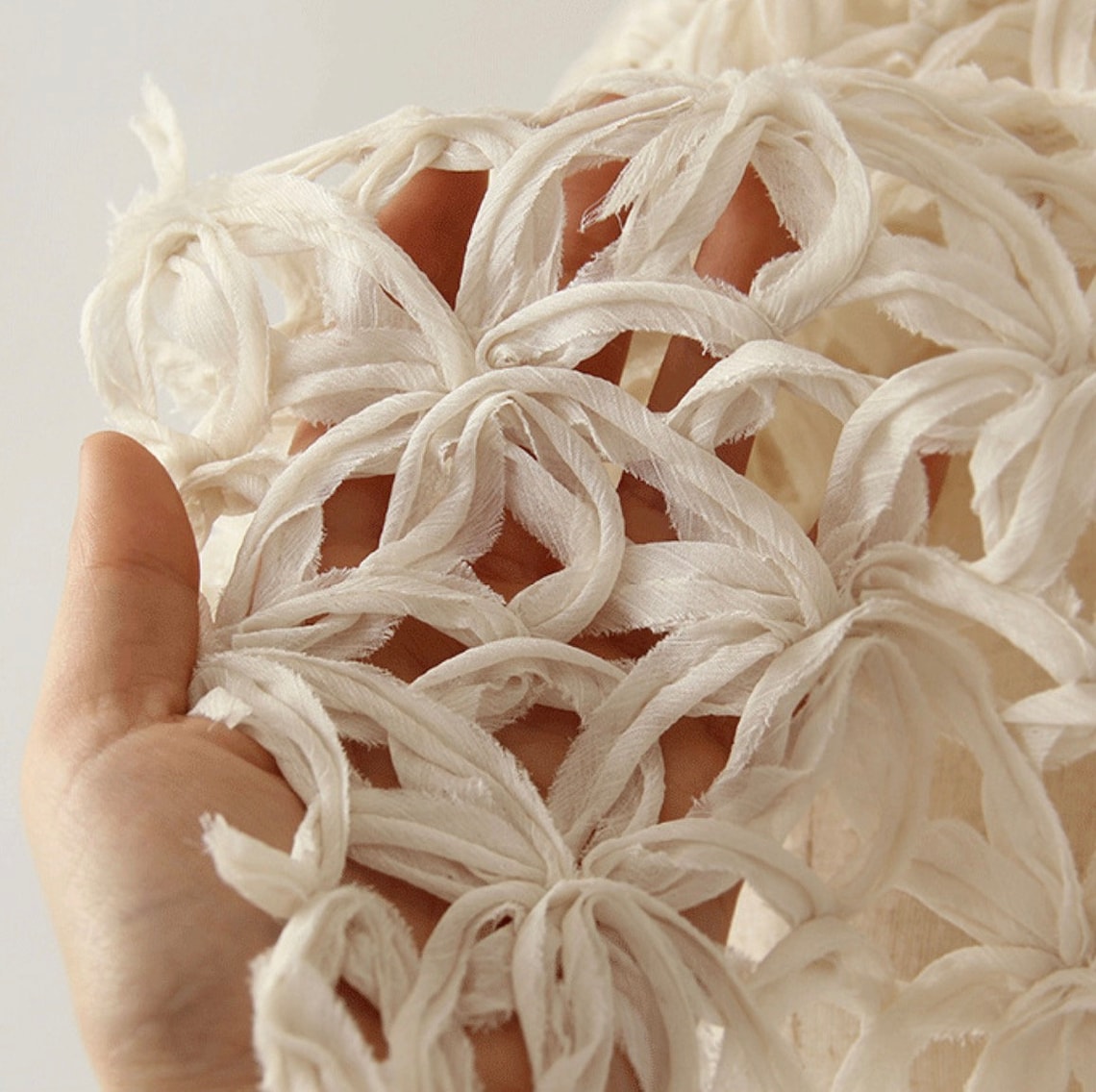 3D floral-patterned openwork crochet fabric