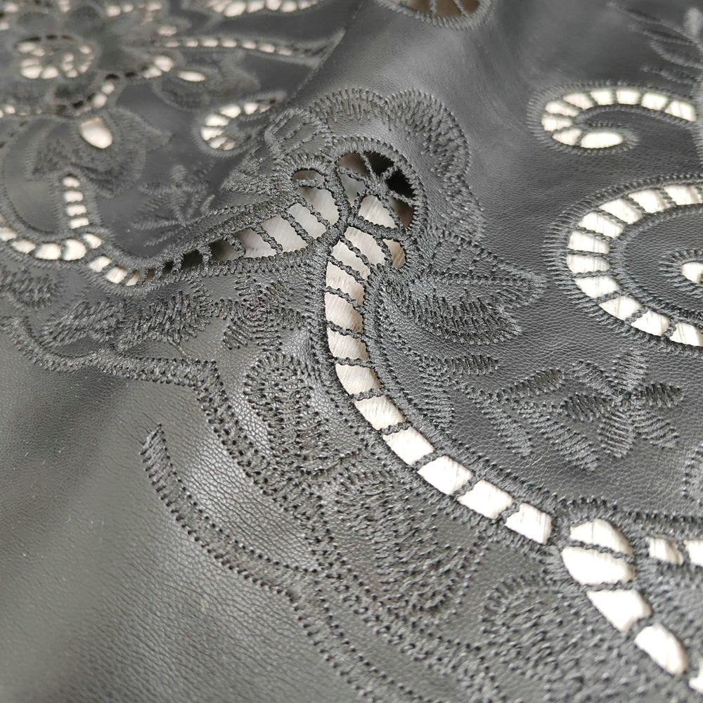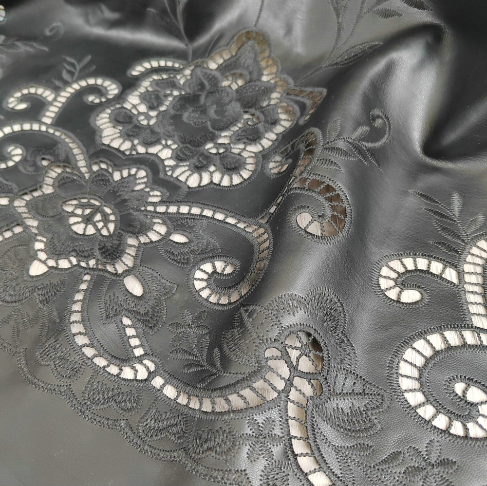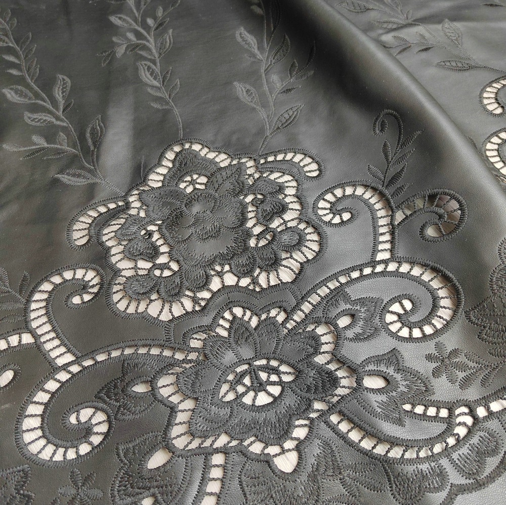 Cutwork embroidered satin