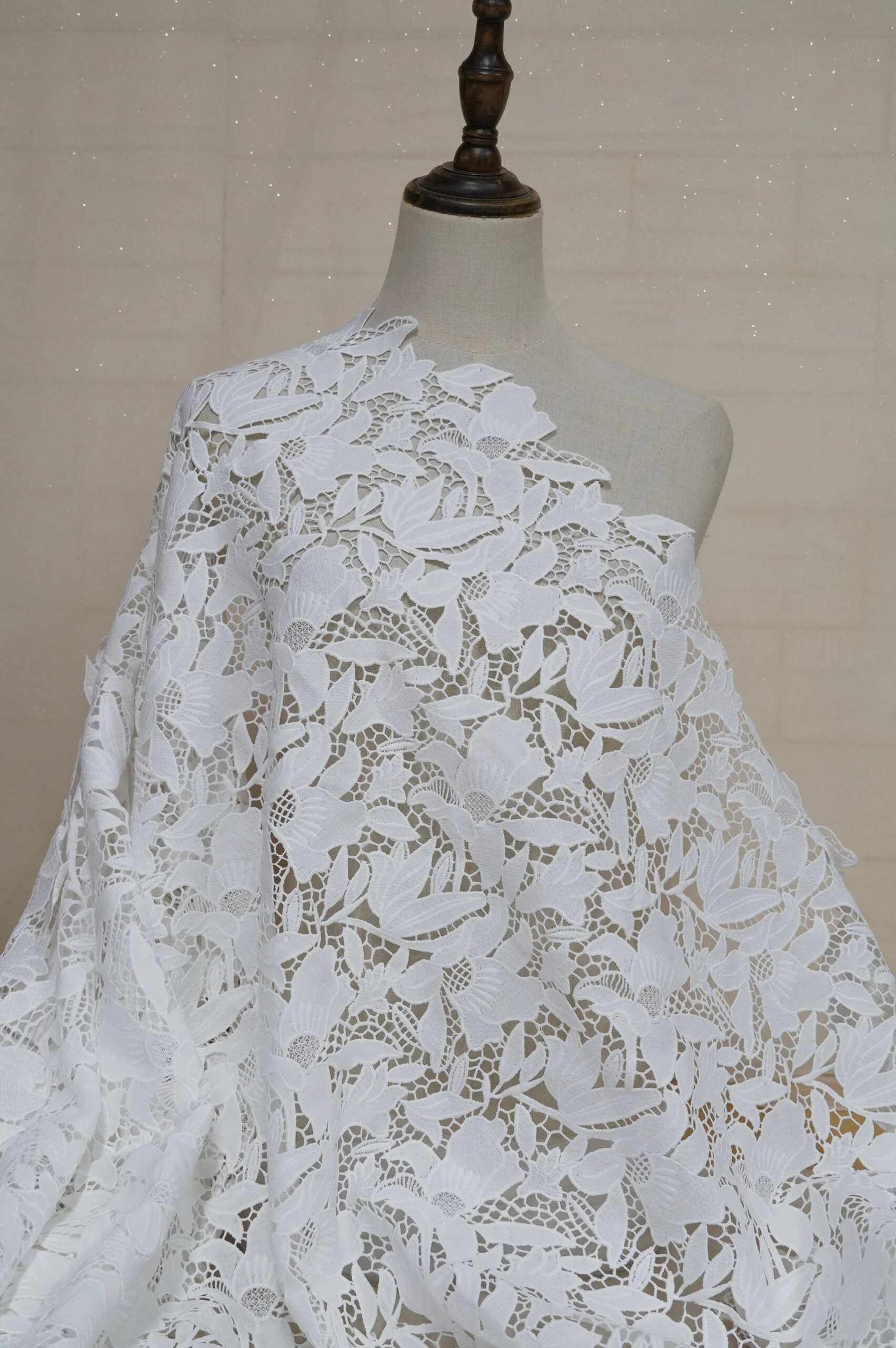 Sheer white lace with delicate decorative patterns