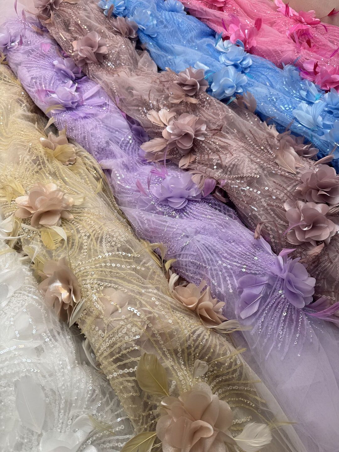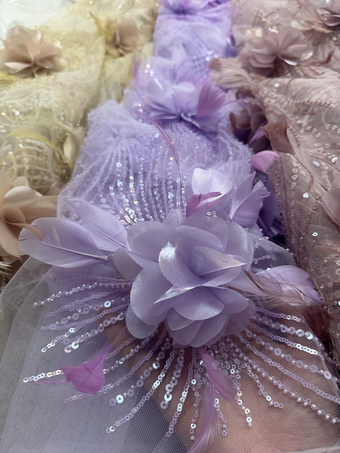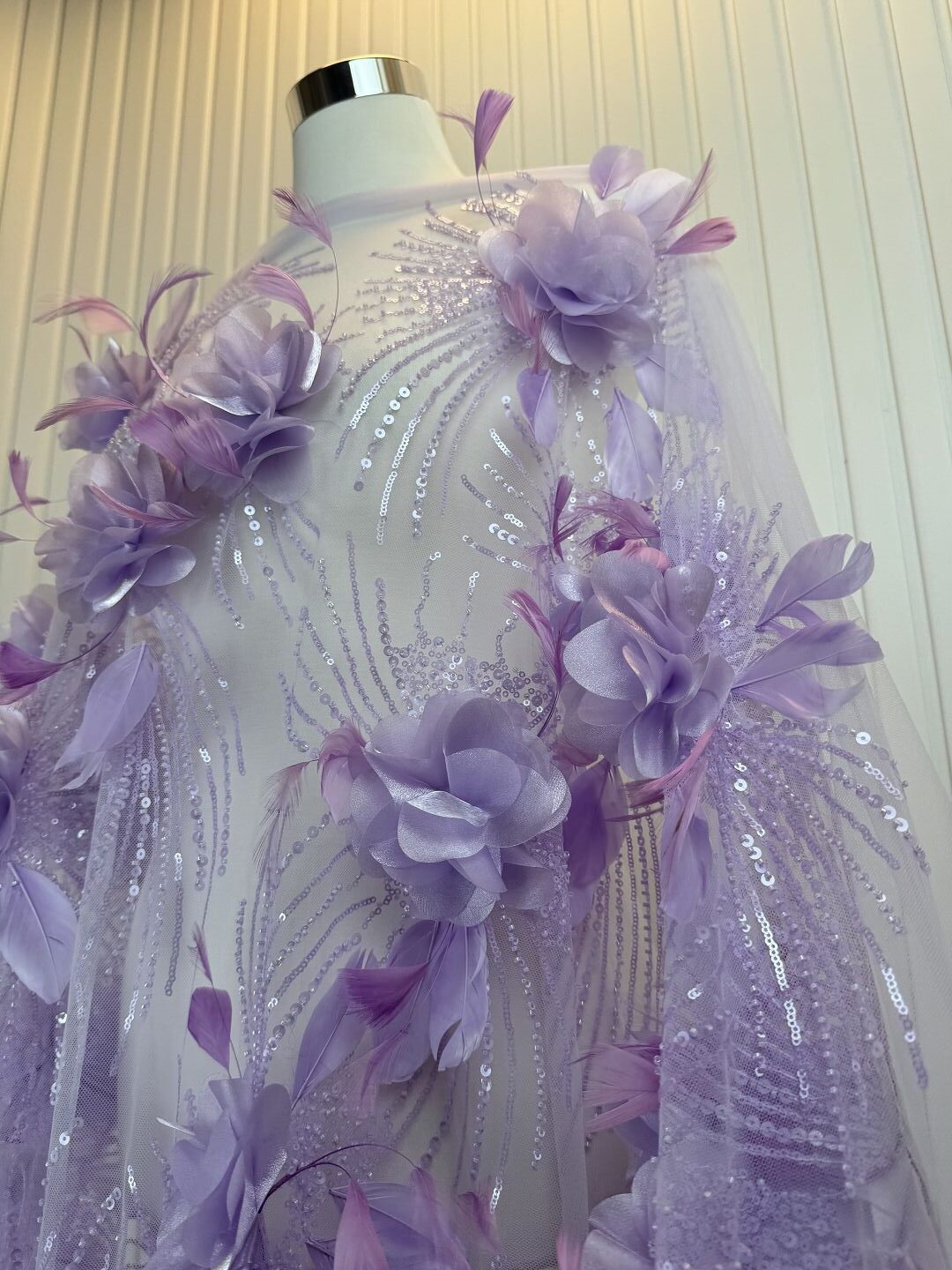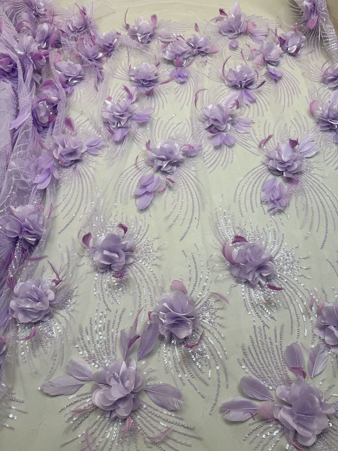 Liliac 3d floral with sequins embroidered couture dress lace fabric