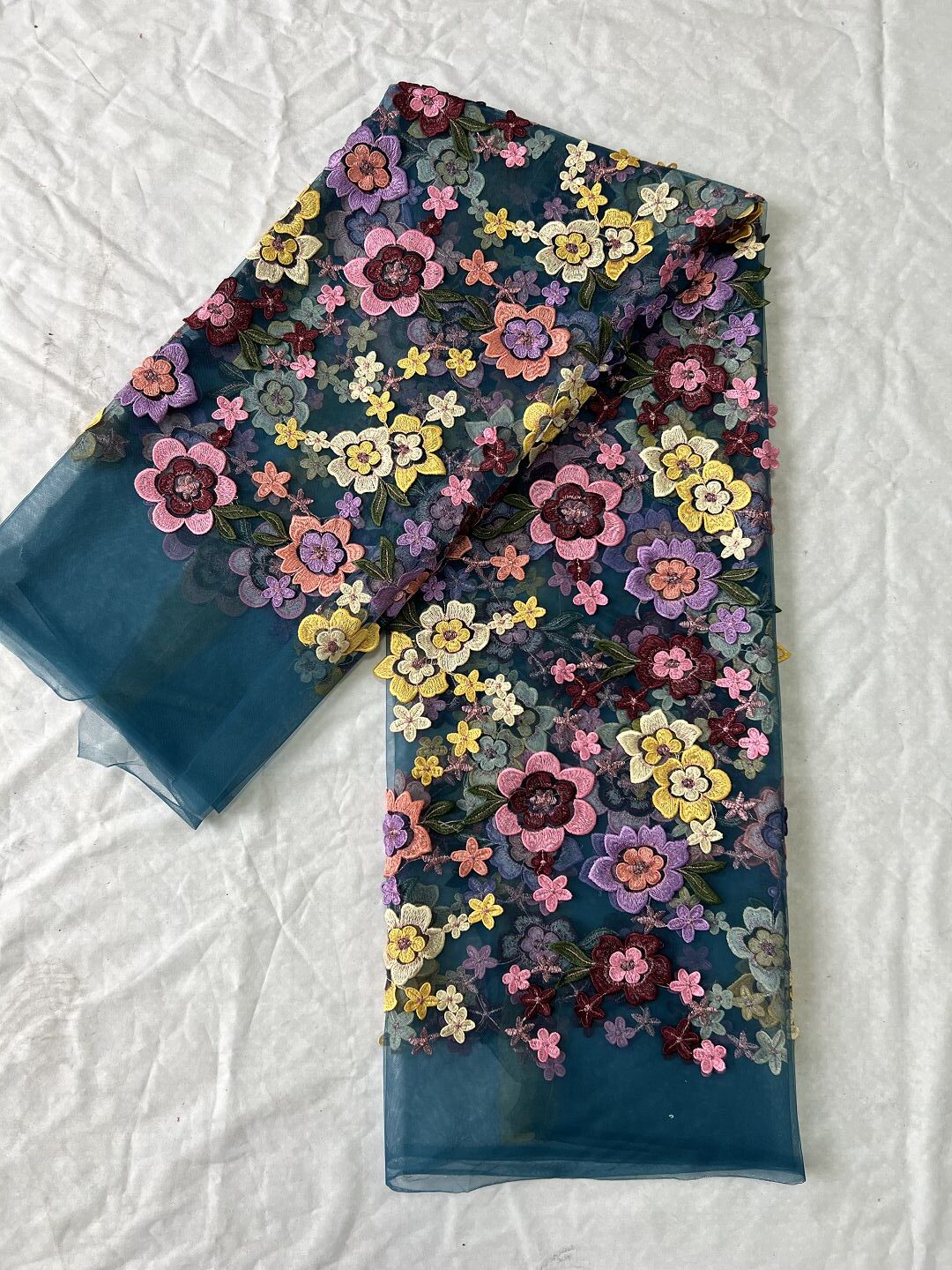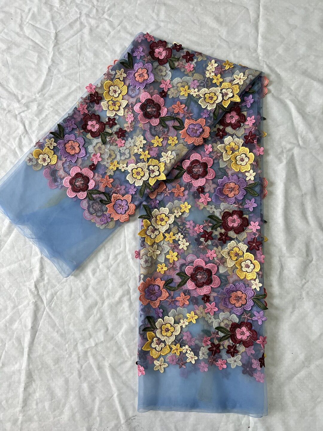 3D floral embroidered mesh fabric